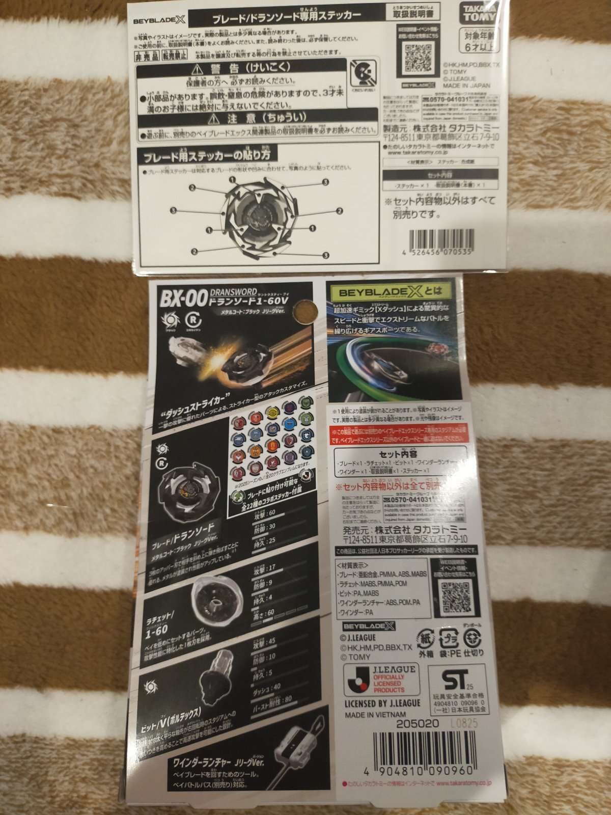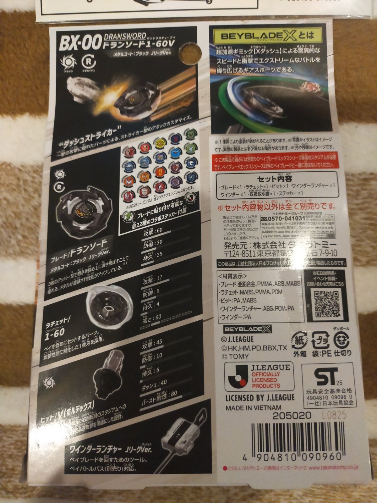 | Product Name : | BEYBLADE X BX-00 Starter DRANSWORD 1-60V Metal Coat: Black "FC TOKYO" J.League Ver. BX-00 ドランソード1-60V メタルコート:ブラック JリーグVer. |